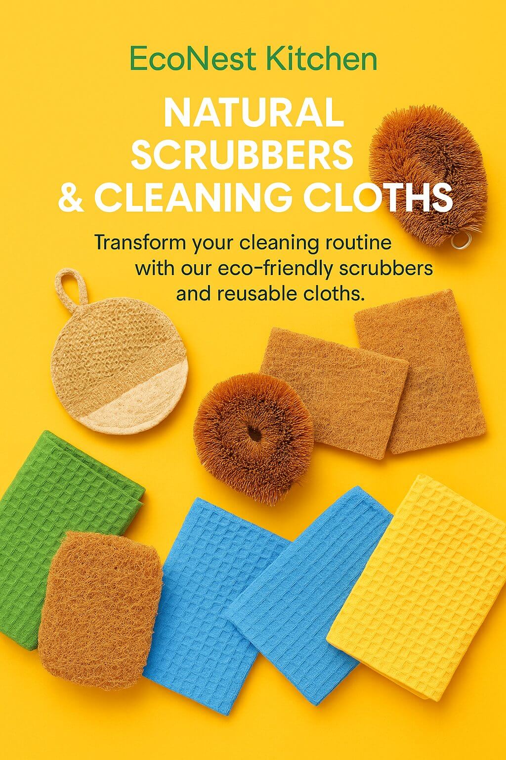 Transform your cleaning routine with EcoNest Kitchen's Natural Scrubbers & Cleaning Cloths....